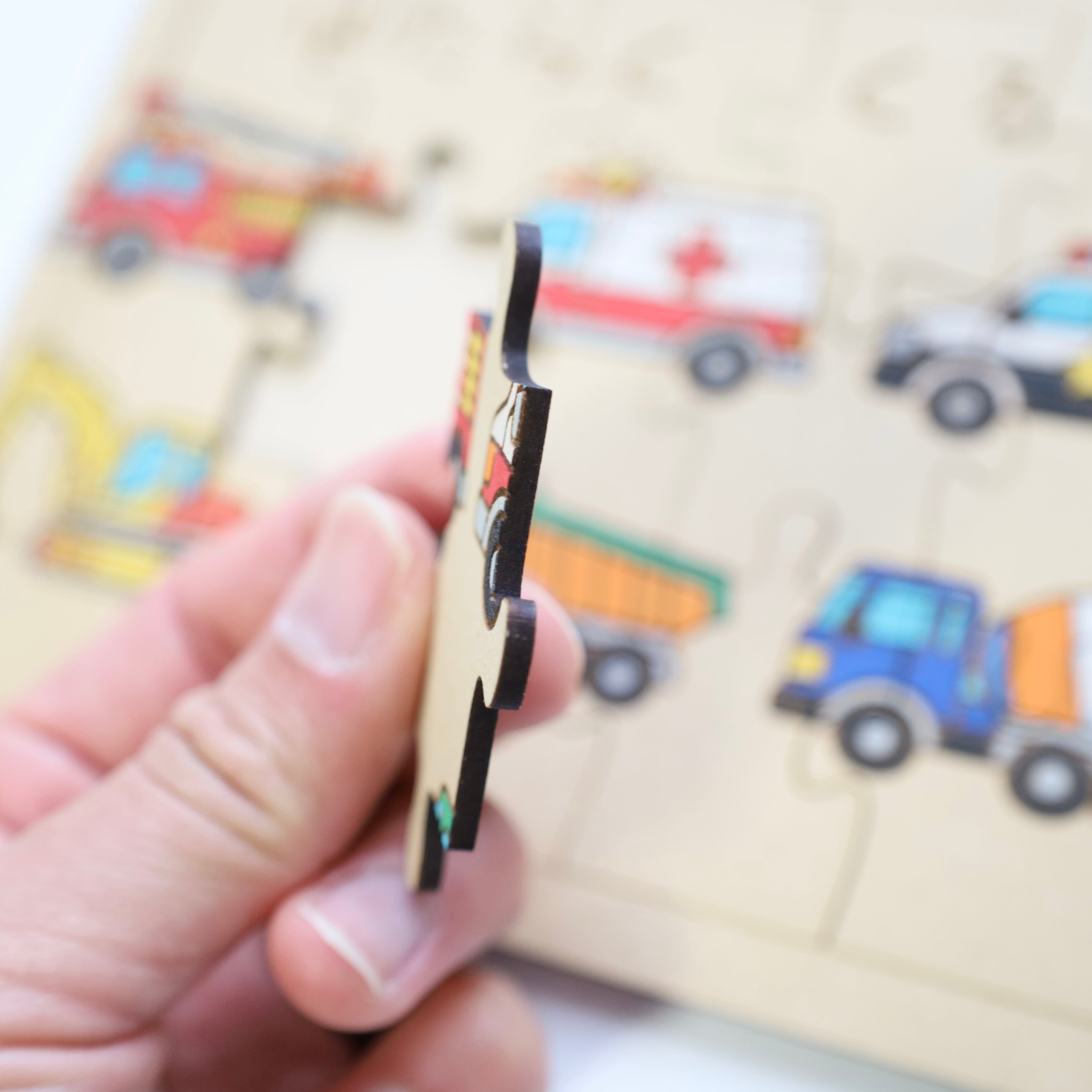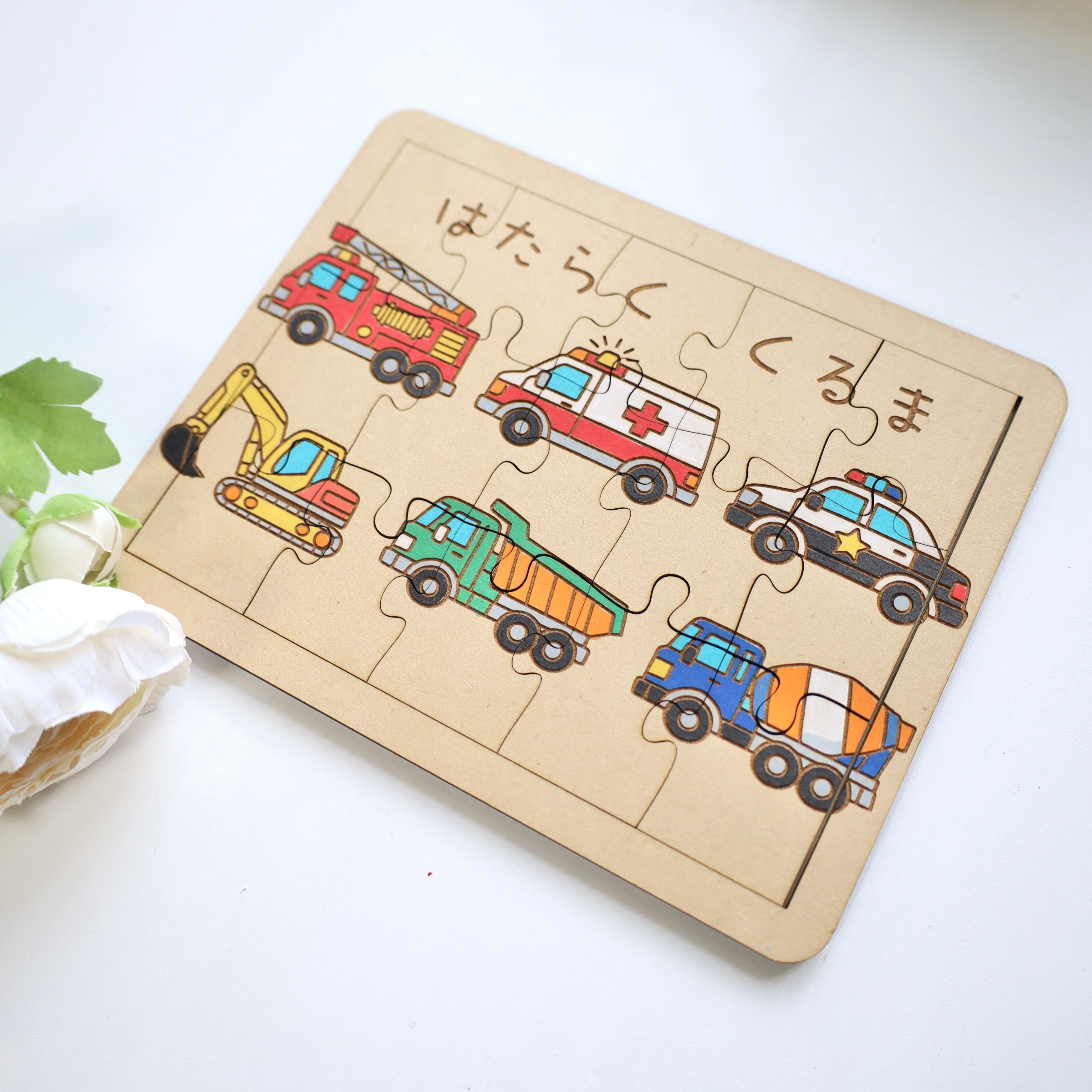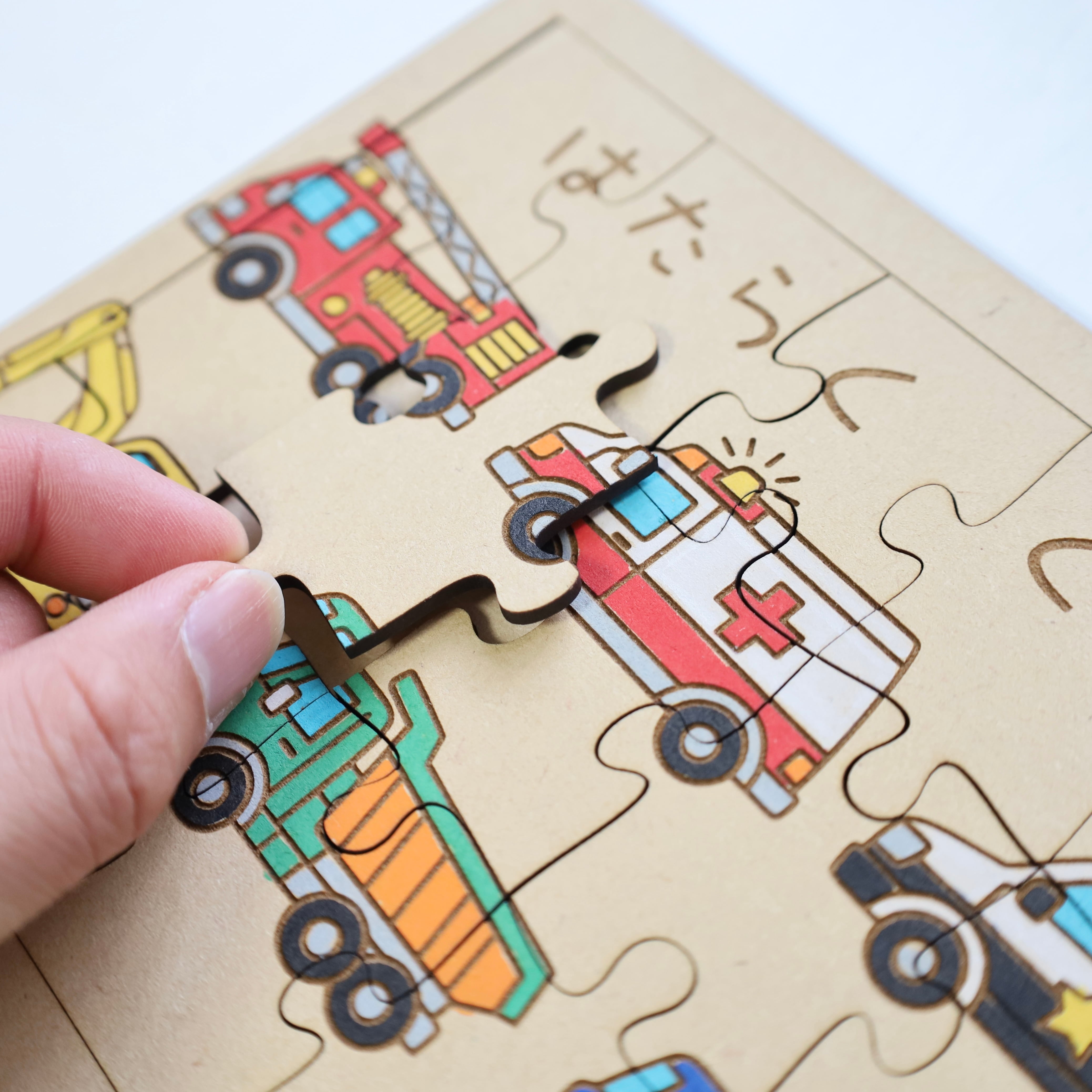 【特徴】・子どもに人気のはたらくくるまデザイン・折れにくい厚みのある木製ピース・指先を育てるパズル・プレゼントにもぴったり