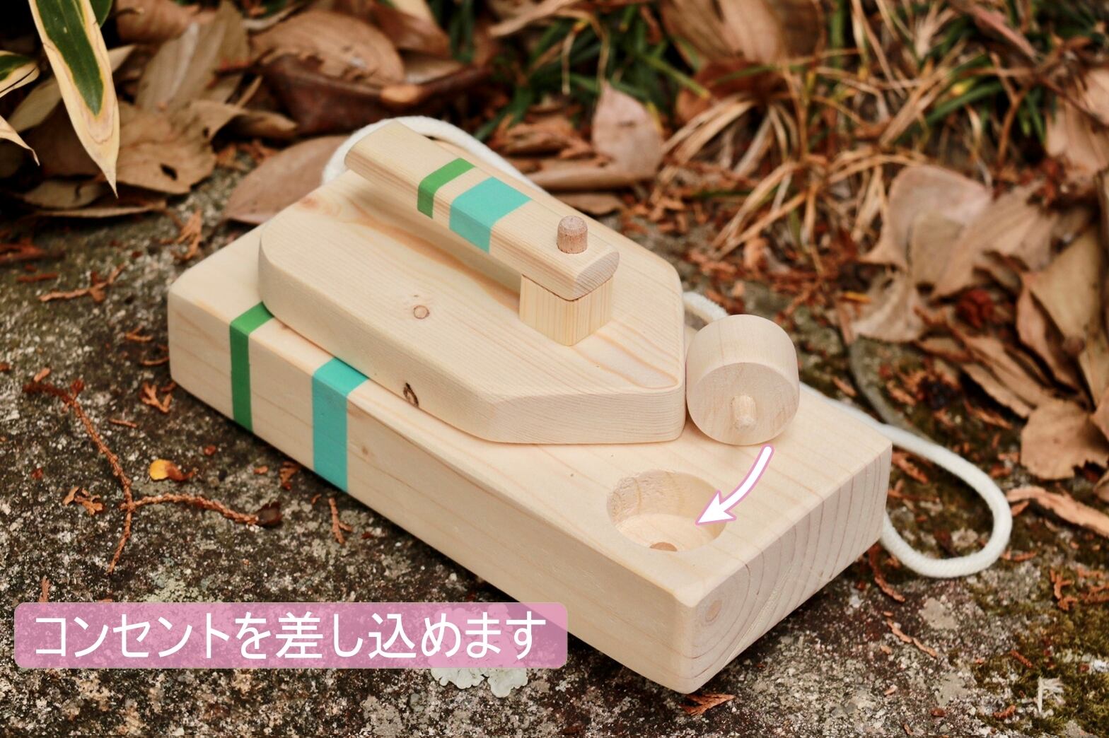 ◯木製のコンセントを差し込むことできます。(コンセントは差し込みやすいよう1つの穴にしています)