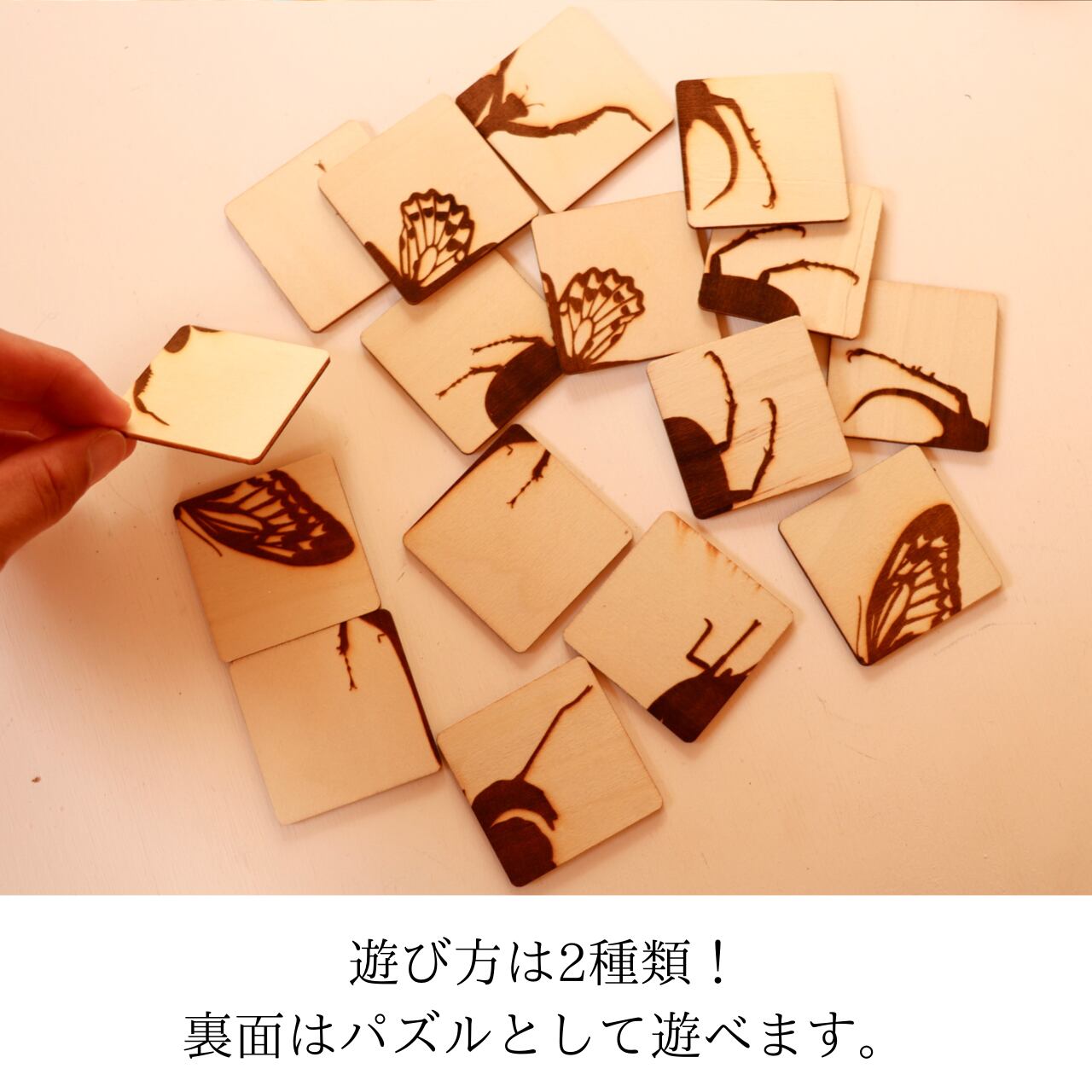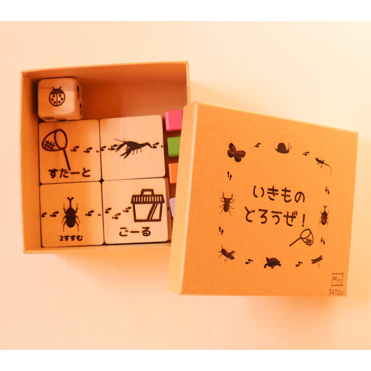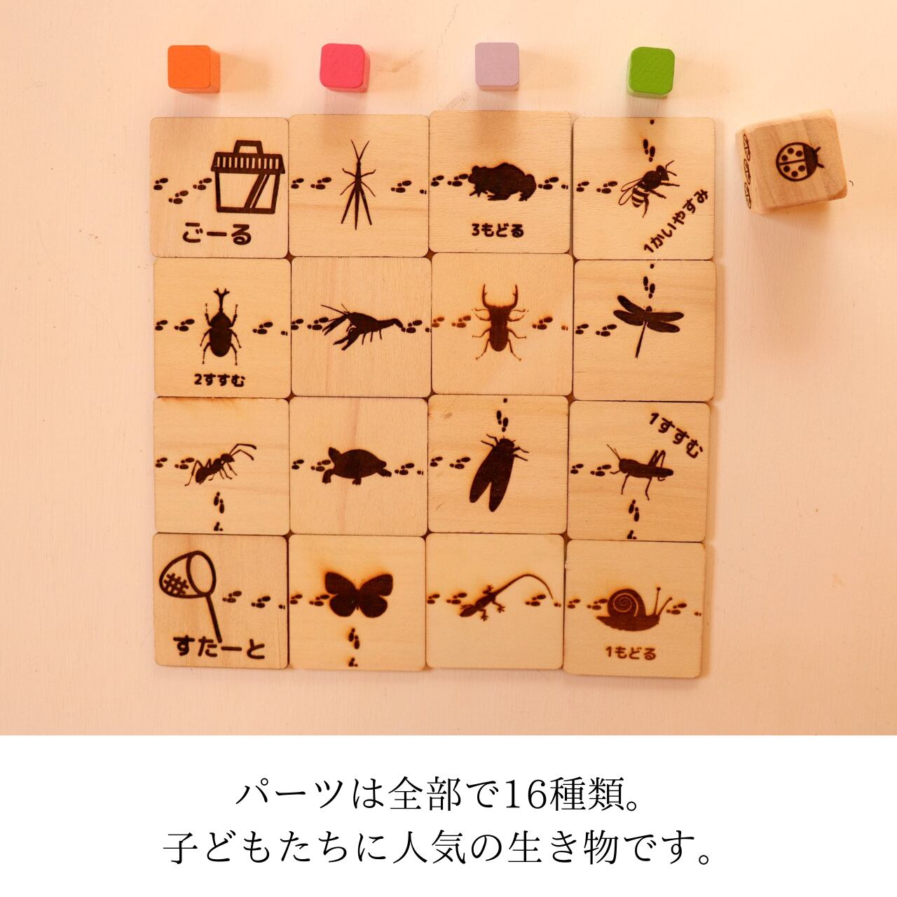 ◯表面は「すごろく」、裏面は「生き物パズル」。2種類の遊びを楽しめます。
