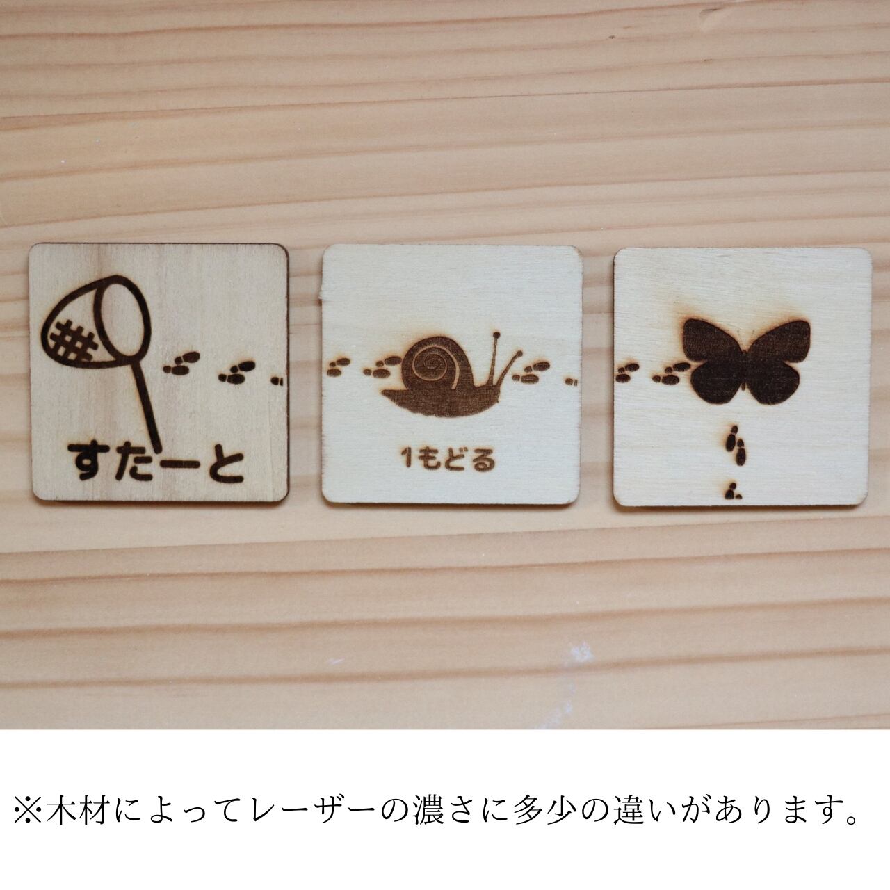 ・1つ1つレーザーで彫刻しています。木の材質によって色の濃さに違いがあります。不良ではございません。