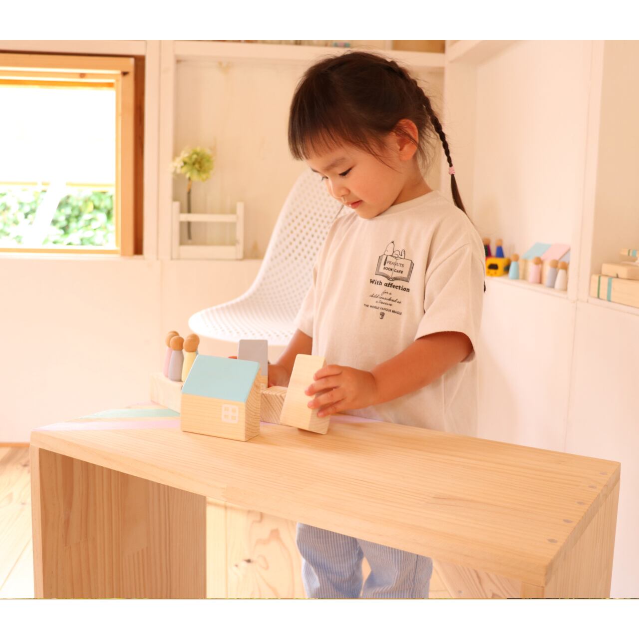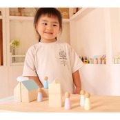 ◯木の人形を家族や友達に見立てて遊び、想像力を膨らませて遊べます。
