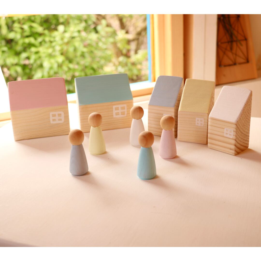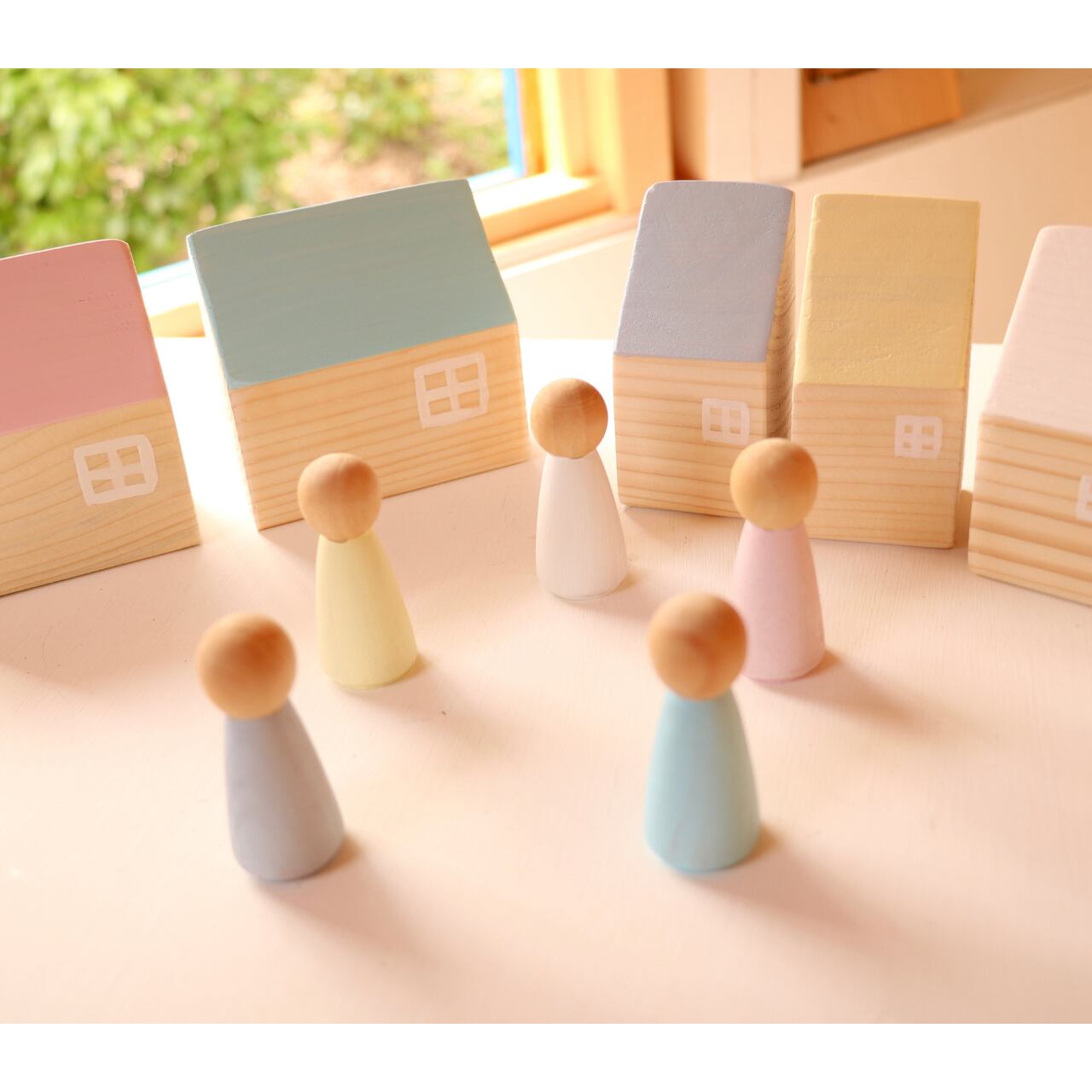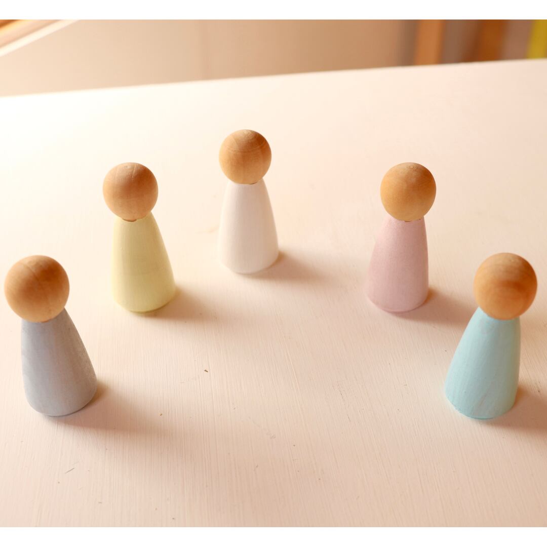 そんな子どもたちの姿からヒントを得て、「もっとイメージを膨らませて楽しんでもらいたい!」と思い、木のお人形おもちゃを作りました。