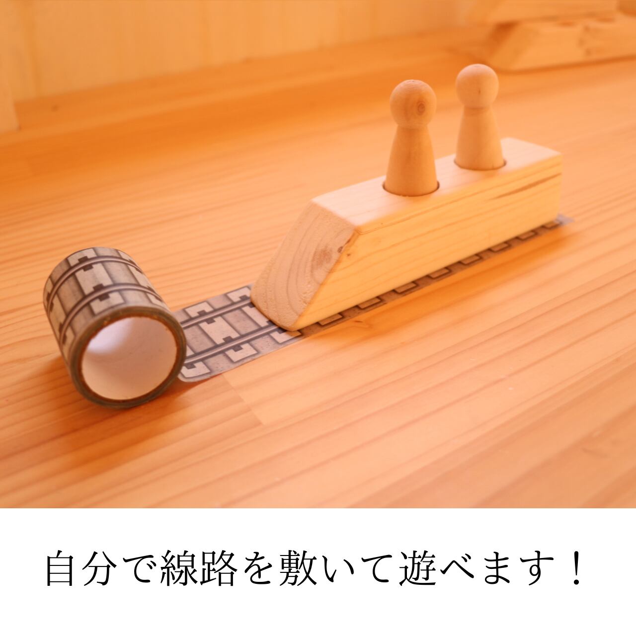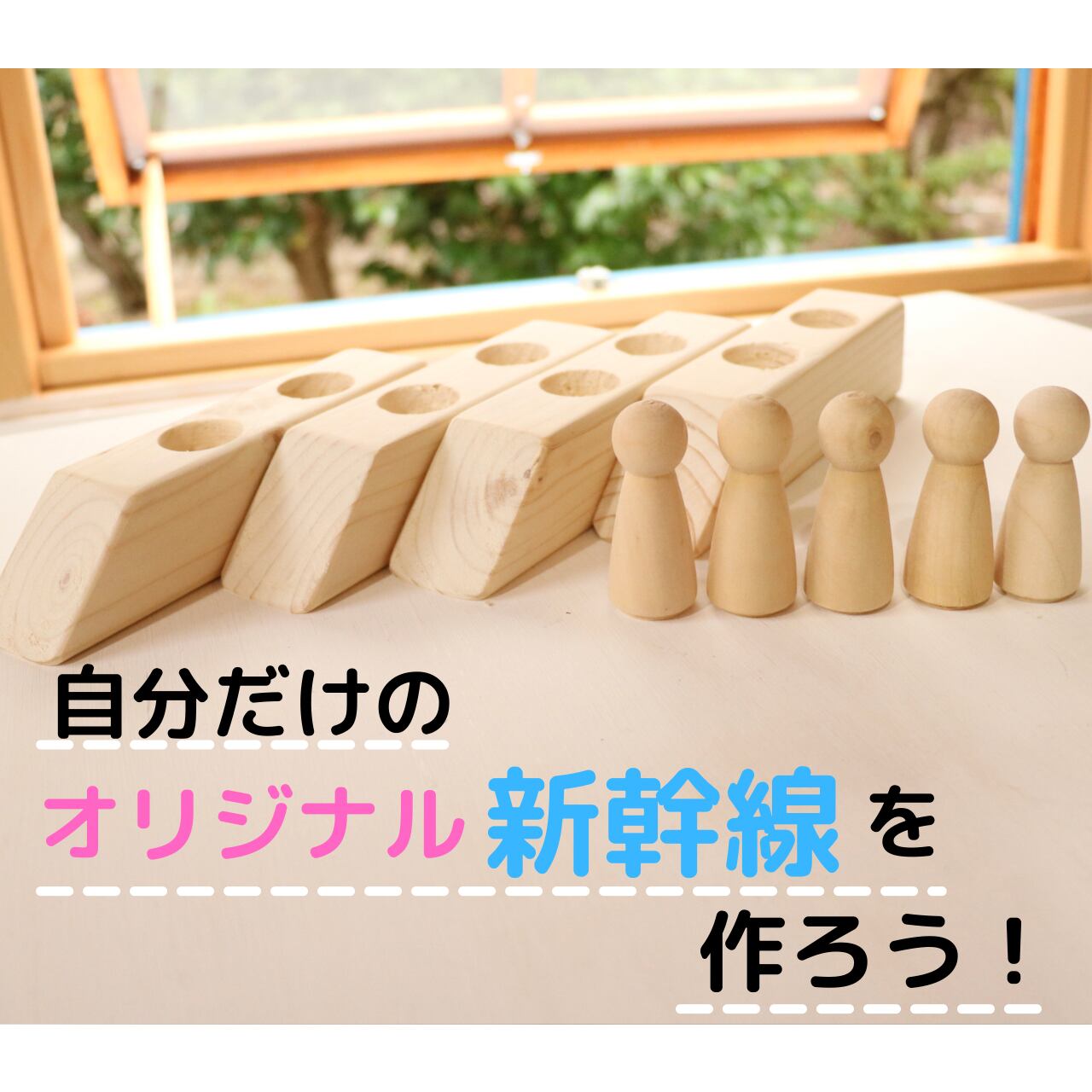 ◯木の新幹線、人形を使って見立てて遊んだり、想像力を膨らませたりして遊べます。